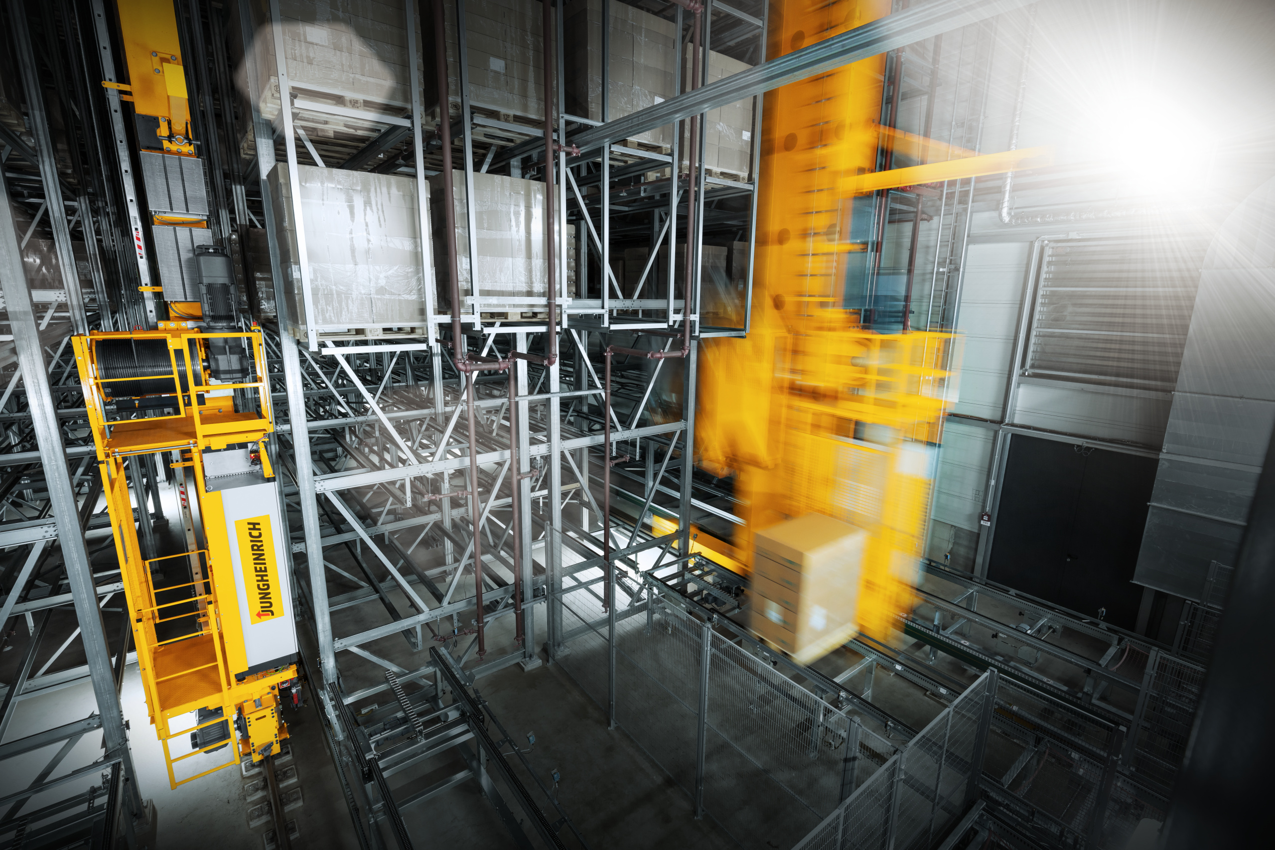 La finalización del nuevo edificio, incluida la instalación de estanterías de 63 metros de largo, 15,8 metros de ancho y 6,7 metros de alto, está prevista para el próximo año. Todo el almacén está diseñado para una variedad de clases de sustancias peligrosas. Las áreas están separadas por muros ignífugos y rociadores adicionales evitan la propagación de cualquier incendio a las áreas vecinas del almacén. La nueva instalación es especial no solo por su alto grado de automatización, sino también por el diseño del edificio. El almacén está en el sótano del edificio de producción. “Los dos transelevadores de pasillo, que Jungheinrich suministra en el diseño de dos maestros, viajan en fosos para ganar altura de almacenamiento”, agrega Michael Hediger, director de proyectos de “Sistemas Logísticos” en Jungheinrich.